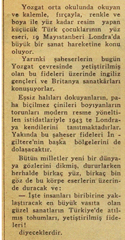 ?. 1943 / "Londra’da Yozgat Çocuklarının Sergisi" / HEP BU